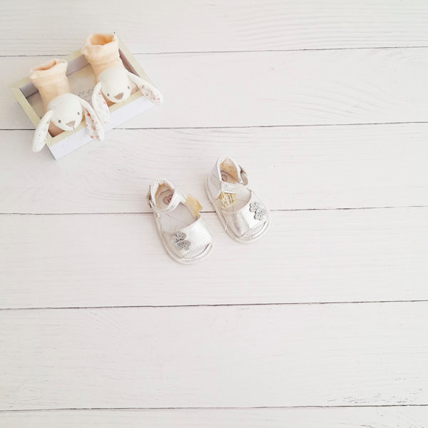 Sandalia blanda Cuerina Plateado Marca Limonada 15 Estado Tiki taka