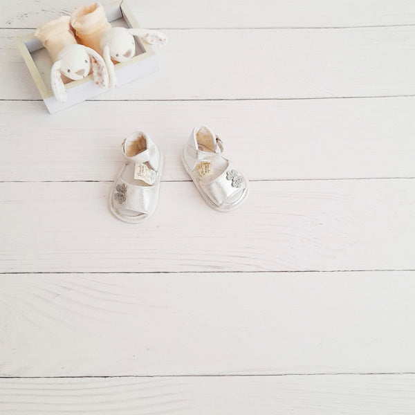 Sandalia blanda Cuerina Plateado Marca Limonada 15 Estado Tiki taka