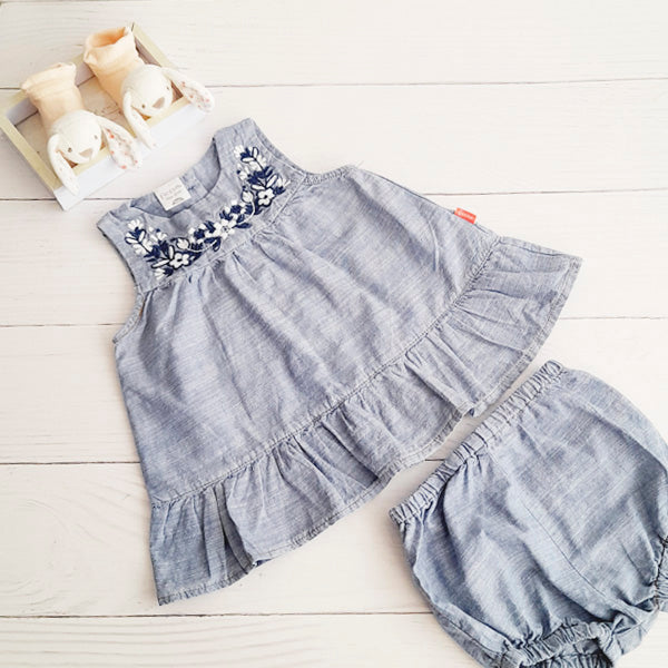 Vestido Algodón Azul Marca Ficcus 6 M Estado Tiki taka